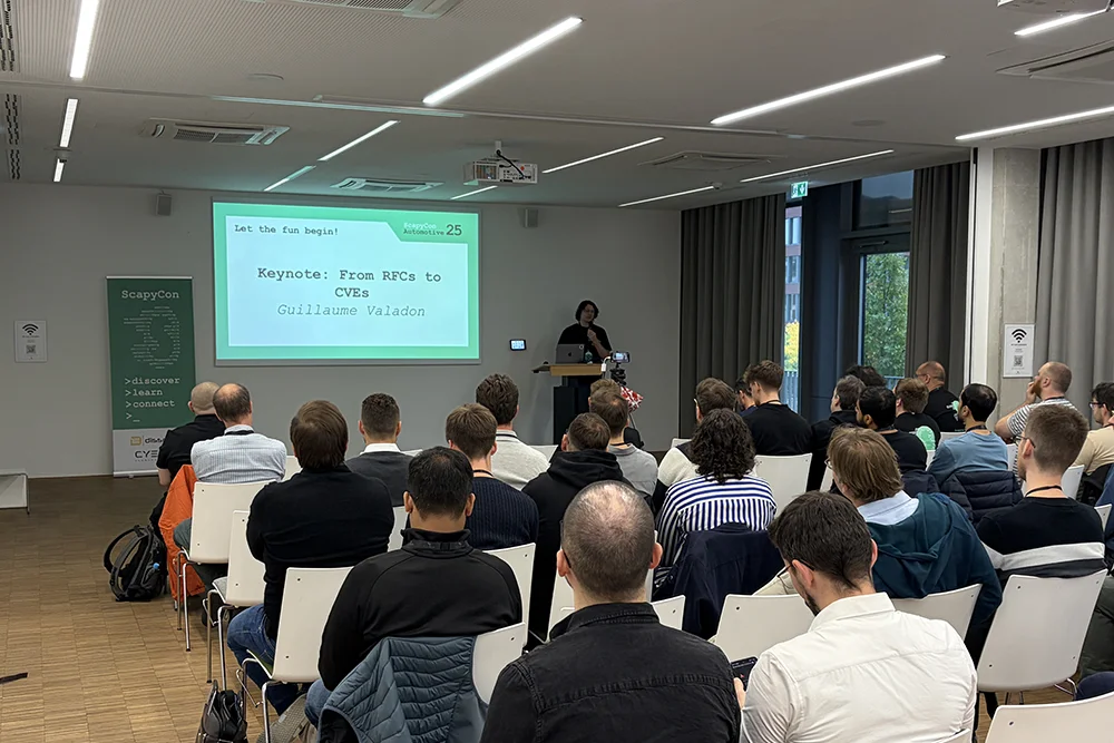 Die ScapyCon ist unsere jährliche Veranstaltung, auf der wir eine engagierte Gemeinschaft von Liebhabern der Cybersicherheit zusammenbringen, die die Grenzen der Manipulation von Netzwerkpaketen in den Bereichen Automobil, IoT, Luftfahrt, Verteidigung und darüber hinaus ausreizen. Im Kern geht es bei ScapyCon um technisches Fachwissen und gemeinsamen Wissensaustausch – denn nur durch Zusammenarbeit können wir die Sicherheit langfristig voranbringen.